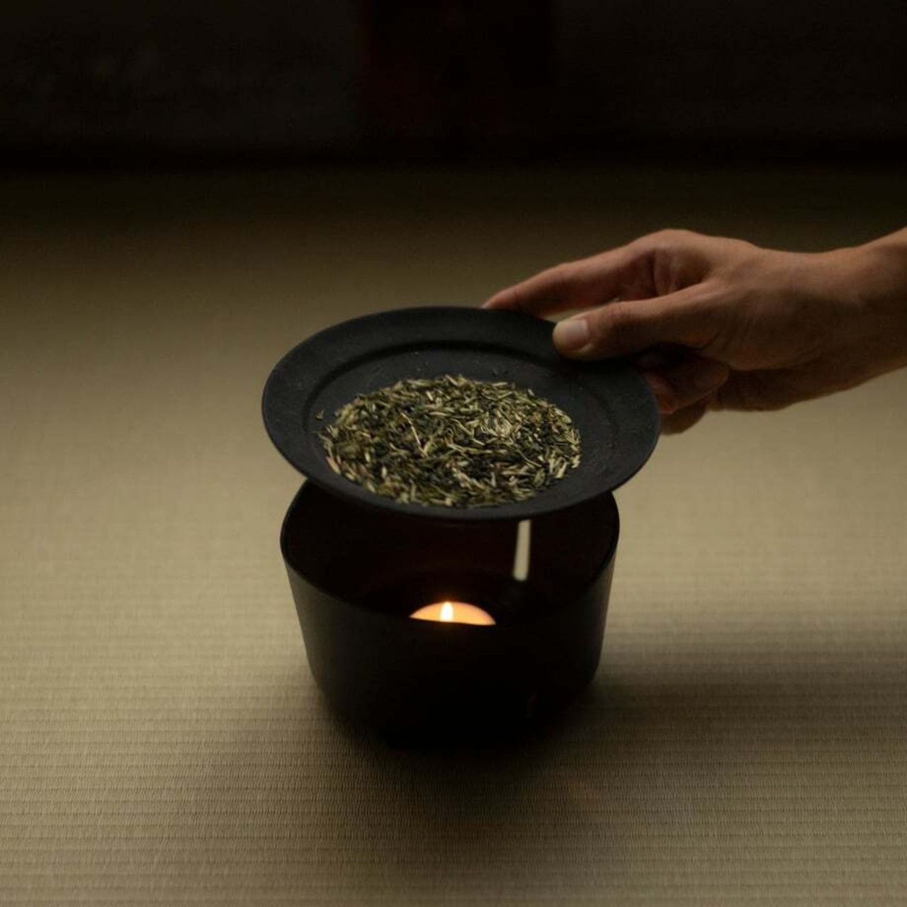 まずは蝋燭を灯し、葉を皿へ。漆黒の中でささやかに揺れる炎と徐々に焙煎される香りとを楽しんでいただきたい。姿に静けさを、香りに安らぎを感じ、心身の癒しとなるだろう。時には焙じた葉に湯を注いで味わってみる。視覚と嗅覚とに加え、味覚にも働き掛けられ、一層体験は深まる。ひと手間を掛ける行為一つ一つが豊かさを生む。いつ、どのようにして、に正しい答えはない。それぞれの暮らしの中で、あなたにとって最適のひと時に、心地のよい仕方で取り入れていただきたい。ひとたび火を灯せば、五感で自然を感じ、心身は調和へと導びかれるだろう。