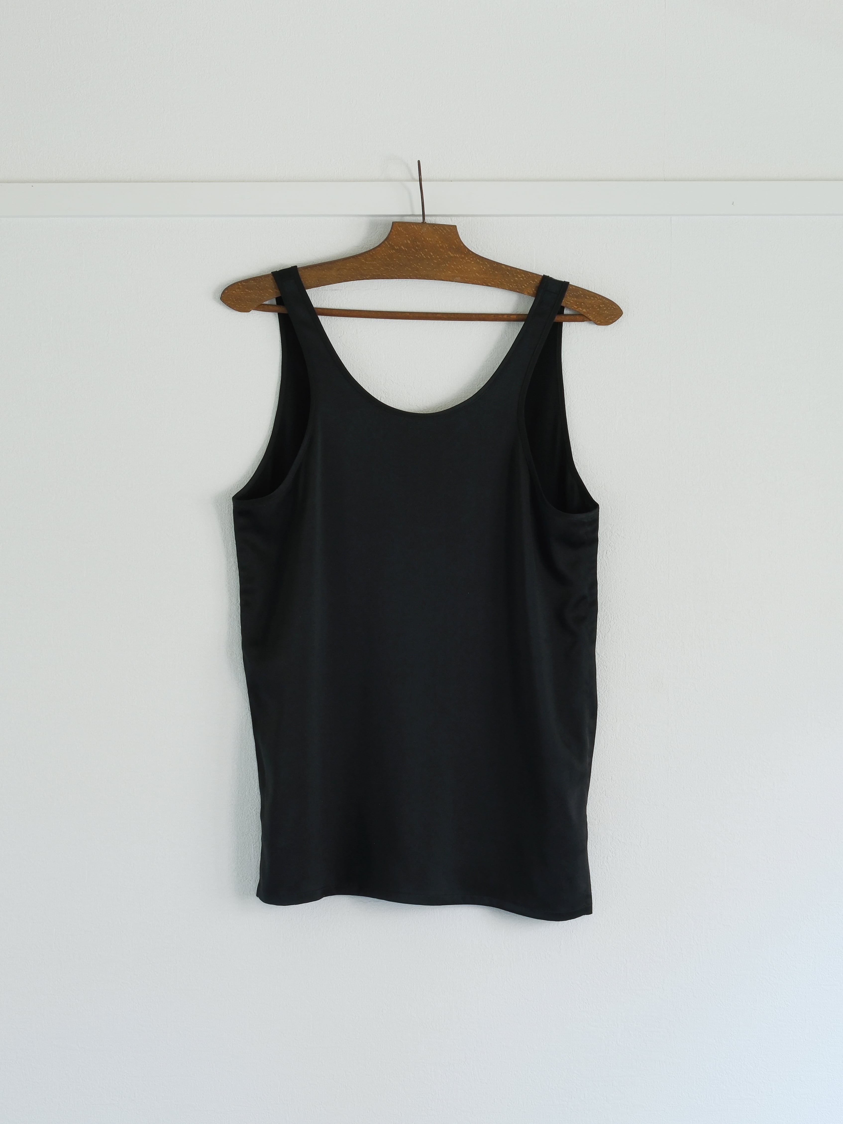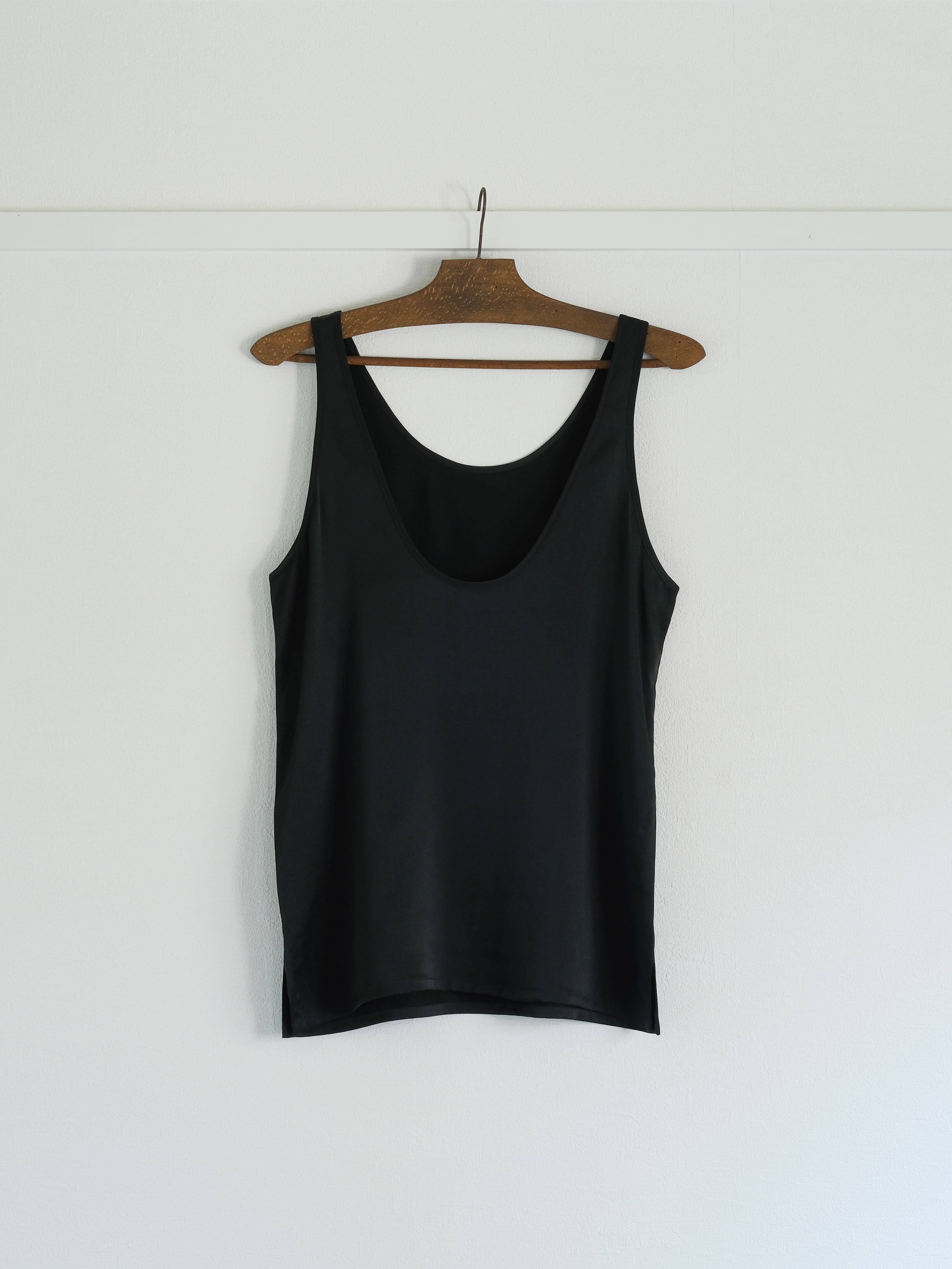 The unefig. tank top is designed to be worn both as an inner layer and as a standalone top. We have added small slits to the left and right hem to serve as a subtle design accent when worn untucked over bottoms. Additionally, the body length is generous enough to ensure it stays securely in place when tucked in.